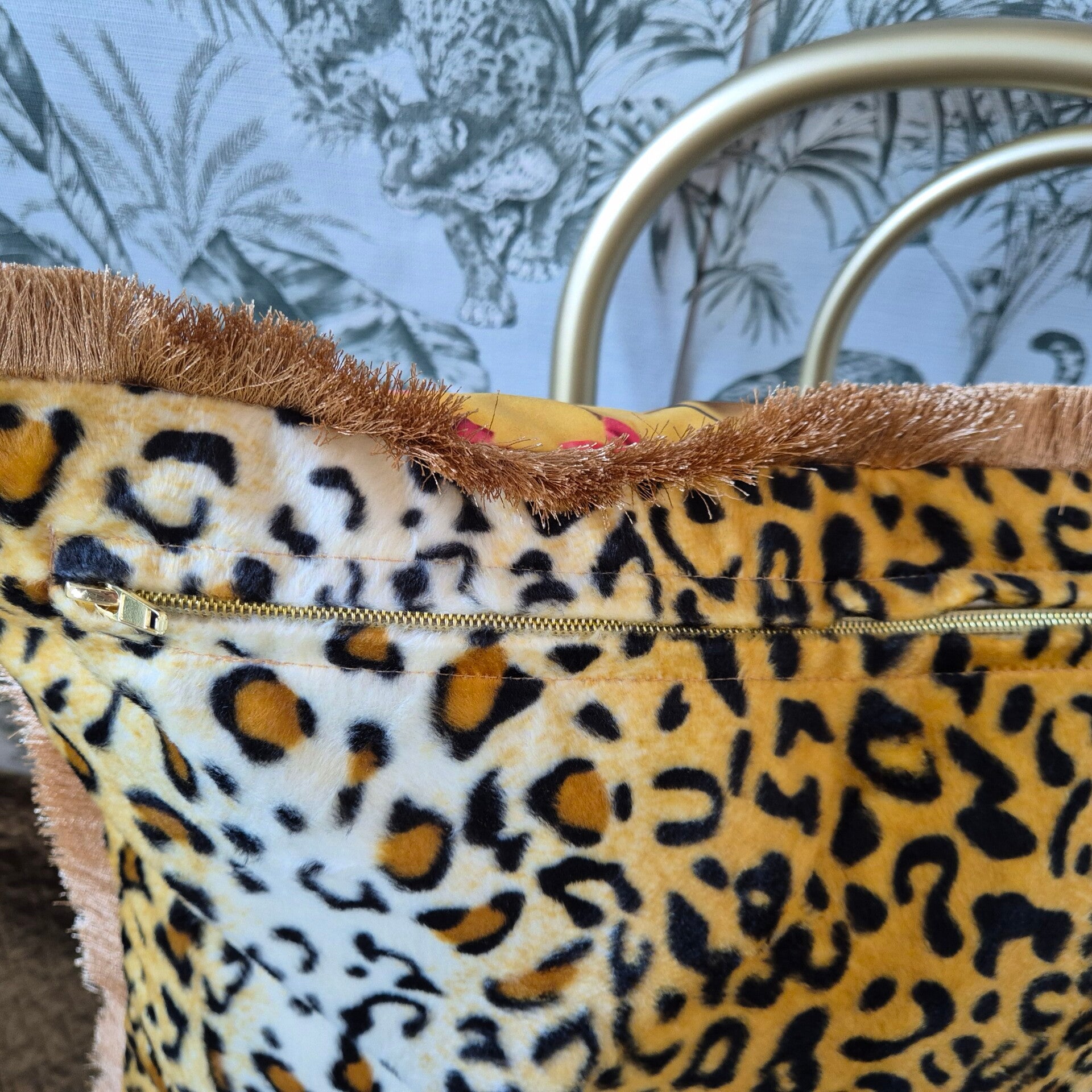 Een handige en discrete rits is subtiel ingewerkt in de panterprint stof aan de achterzijde van de hoes, waardoor het eenvoudig is om je binnenkussen te verwisselen. De rits is soepel en stevig, en gemaakt voor herhaaldelijk gebruik zonder concessies te doen aan de kwaliteit.