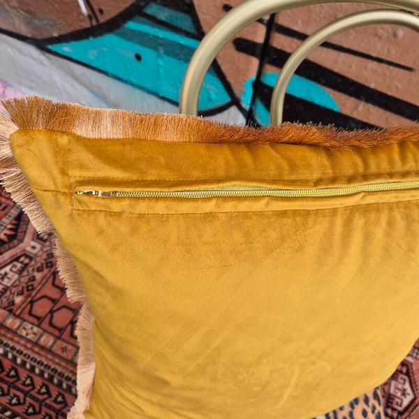 Dankzij de praktische goudkleurige rits aan de achterzijde is de hoes gemakkelijk te vrwijderen en te reinigen. De randen zijn afgewerkt met een elegant goudkleurig franjeband wat een extra dimensie geeft aan het ontwerp.
