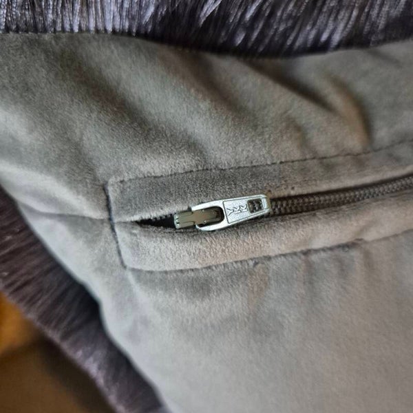 Aan de achterzijde is de kussenhoes gemaakt van grijze zachte velours stof met een mooi weggewerkte rits die zorgt voor een eenvoudige toegang tot het binnenkussen. Deze kussenhoes is niet alleen een lust voor het oog, maar ook praktisch en duurzaam. Maak van je ruimte een oase van comfort en stijl met deze unieke toevoeging aan je interieur. Perfect als cadeau of om jezelf te verwennen.