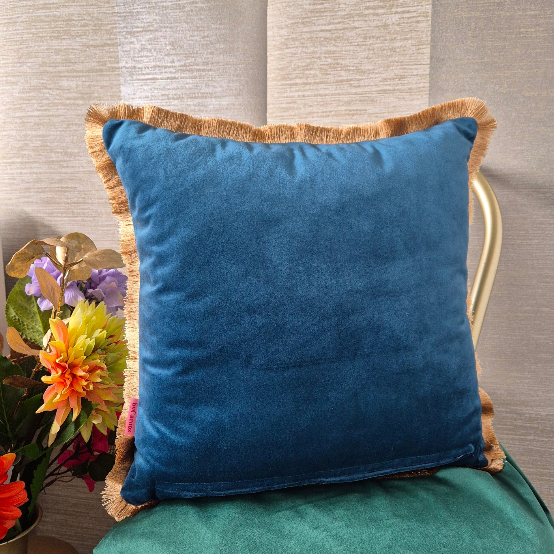 Blauw velours kussenhoes met vrouwenprint, fluwelen sierkussenhoes met, vierkante handgemaakte kussenhoes